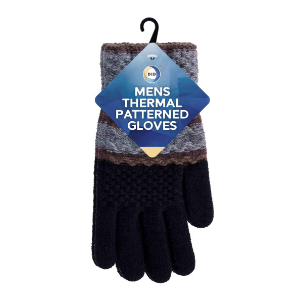 Mens thermal patterned gloves sold in wholesale quantities. These are ideal to wear during cold weather to keep warm. Comes in 3 different patterns.