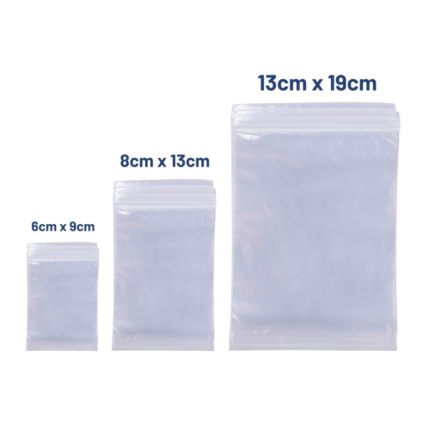 Pack of 60 resealable bags sold in bulk quantities. Ideal for storing a variety of items or foods. Comes in 3 different sizes.